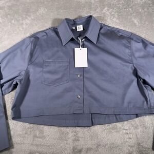 Helsa Shirt Womens Small Slate Blue Chino Cropped Button Down Organic Cotton NEW