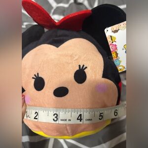 @ladybugmiss Sorry I thought I added pictures with measurements the Minnie plush is about 6 inches and the apple plush is about 8inches across I did add pictures if you wanna take a look or if you have anymore questions please feel free to reach out. Thank you