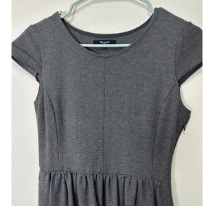 Keywords: Madewell dress, women's dress, dark gray dress, cap sleeve dress, fit and flare, empire waist, gathered skirt, crew neck, casual dress, office dress, everyday wear, versatile, comfortable