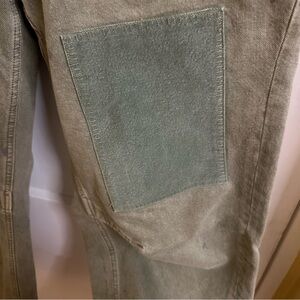 Features: Distressed detailing throughout, paint splatter features, oversized patch pockets, contrast drawstring waist, pull-on style