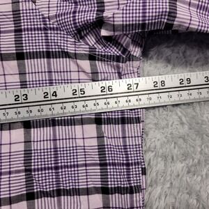 Claiborne Stretch Shirt Mens XXL Purple Plaid Long Sleeve Button Up