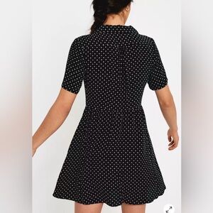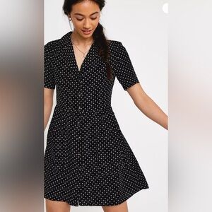 Shirt dress from UO with an allover dot floral pattern. Features a button-through front + classic tab collar. Cut with a mini length hem.