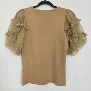 Anthro Maeve Chartreuse Mesh Puff Sleeve Top, M