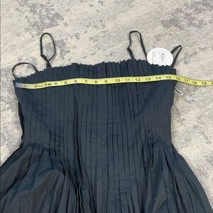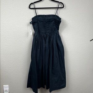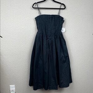 NWT Staud Bella Pleated Cotton Blend Poplin Midi Dress Black Square Neck Sz 6