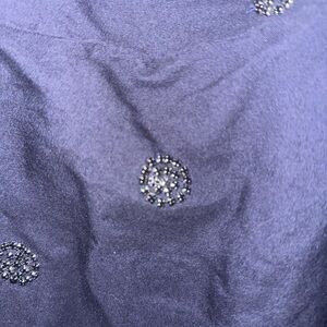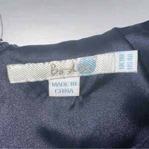 The navy blue color of the dress is adorned with rhinestone accents, adding a touch of glamour to the overall design. The dress is lined and has a zip closure for added comfort. This dress is perfect for any season, whether it be winter, summer, fall, or spring. Don't miss out on this designer piece that will make you stand out in any crowd.
