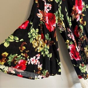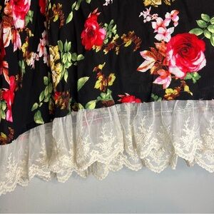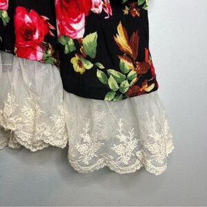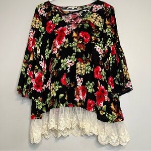 Umgee Women's Caged Floral Bell Sleeve Pullover Tunic Top Lace Y2K