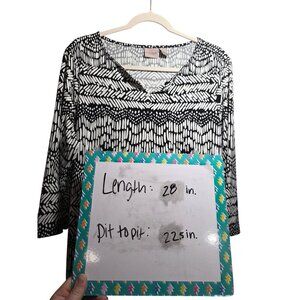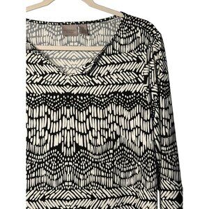 Chico’s Easywear Black & White Tribal Print V-Neck 3/4 Sleeve Top Women’s Size 2
