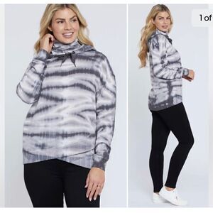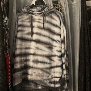 Excellent used condition, seven jeans, gray white and black bamboo charcoal, tie-dye, hooded sweatshirt with crisscross, active hemline and built in neck gaiter/mask perfect for cold winter nights and anytime you’re around people it’s comfy versatile, and the perfect item. This is a rare hard to find item discontinued, and no longer sold. It runs slightly oversize. It can easily fit a 2XL comfortably. With a slightly over size baggies, fit for comfort if you have any questions, please feel free to message me I accept offers and