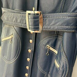 Vintage Leda Spain by Gropper Blue Belted 100% Leather Trench Coat Jacket, Small
