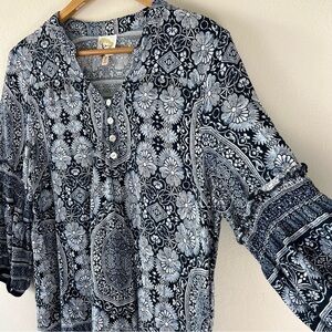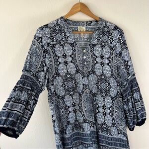 Anthropologie Fig & Flower Bohemian Rayon Balloon Sleeve Tunic Blouse L