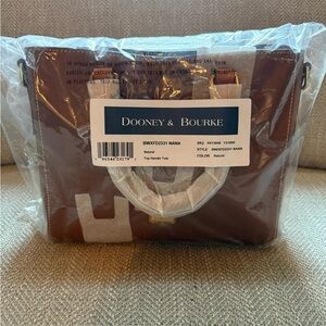 Carmel leather satchel with sturdy handles. Perfect for everyday elegance. Signature Dooney & Bourke craftsmanship.