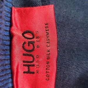 HUGO Men's Two-Tone Blue Crewneck Sweater, Cotton/silk/cashmere. Size S