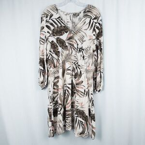 Old Navy Waist Defined Cross Front Crepe Dress Size XL White Palm Print Tropical