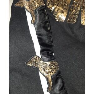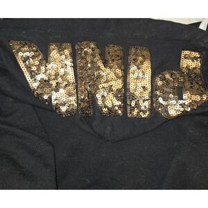 VICTORIA'S SECRET VS PINK BLACK GOLD BLING PUP DOG LOGO SWEATSHIRT SMALL SEQUIN