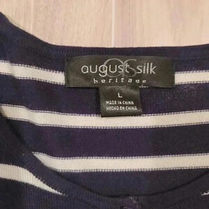 August Silk Heritage 9 Button Cardigan Navy/White Striped Size Large.