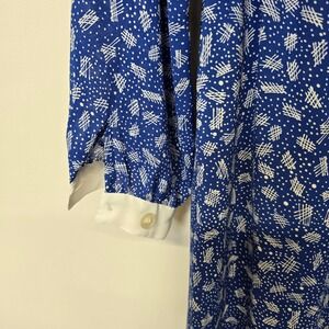 Vintage Womens Blue White Print Dress Sun Dress Casual Day Dress 16W