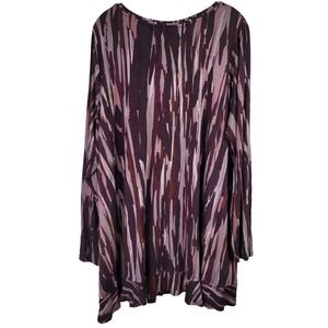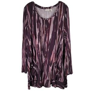 LOGO by Lori Goldstein Women's 3X Purple Striped Long Sleeve Scoop Neck Knit Top