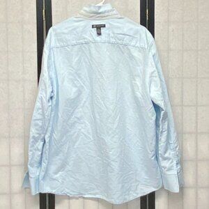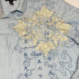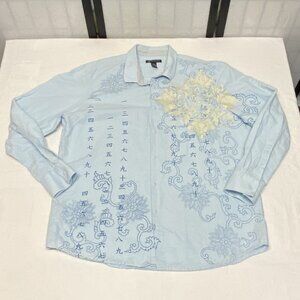 INC Chambray Linen Blend XXL Embroidered Button Up Print Shirt Blue Long Sleeve