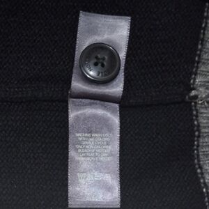Kenneth Cole Reaction Sz. M Black/Gray Cardigan Sweater Vest. Comes with extra button. Machine wash cold with like colors gentle cycle. Only non-chlorine bleach if needed. Lay flat to dry. Warm iron if needed. No flaws noted.