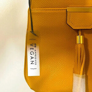 Deluxity Los Angeles Vegan Peta approved Women Yellow Crossbody messenger. New without tagsDelicate design big outer pocket with snap closure adjustable straps light weight medium size