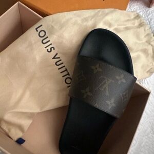 Sleek black leather mules. Slip-on design. Perfect for casual or formal wear.
