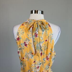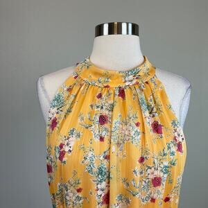 Adrianna Papell Yellow Floral Print Chiffon A-Line Midi Dress Size 12