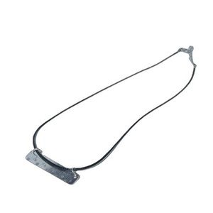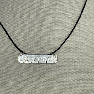 Handmade stamped moon phase silver rectangle pendant black leather cord necklace