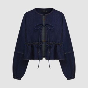NEW WITHOUT TAGS Cider Dark Denim Blouse with Tie Details Size Small