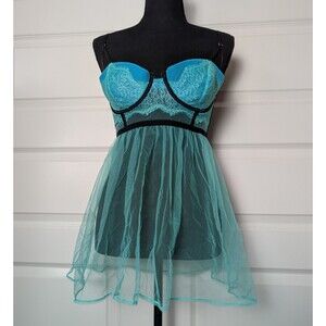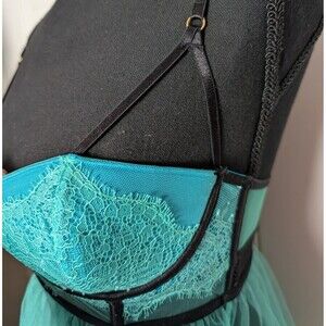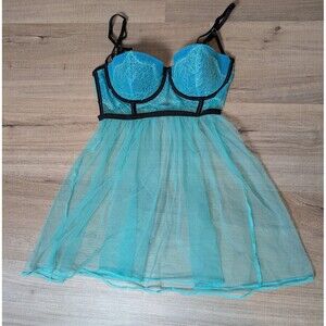 Victoria Secret Size 34C Babydoll Slip Dress Underwire Bra Y2K Gothic Burlesque