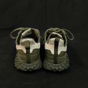 Stylish adidas sneakers. Features green upper with textured sole. Some wear on sole. Cool shoe