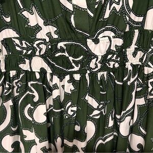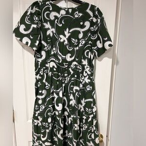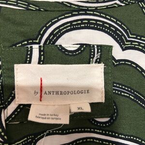 Anthropologie Dress Size XL - Green and White maxi dress with a bold pattern. Features short sleeves and a flowing silhouette. Ideal for versatile styling. This dress was worn once and has been steam cleaned. Extra clean.
