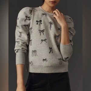 Maeve by Anthropologie Bow Print Puff Sleeve Sweatshirt – Size Large