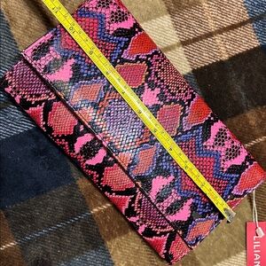 Liliana Pink and Blue Snake Print Clutch