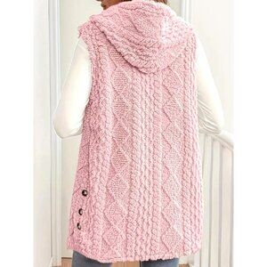 Pink Hooded Plush Vest With Buttons Sleeveless Outerwear S-XXL Sizes
