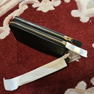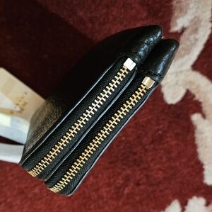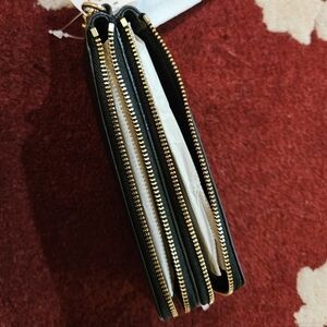 Coach Double Corner Zip Wallet Embossed Black Pebble Leather Gold Tone Hdwr NWT