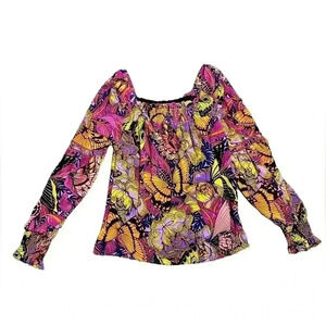 Alexandra Farmer Puff-Sleeved Blouse Butterfly Funky Sz XS