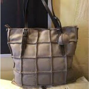 Harveys seatbelt tote bag in a two-tone design, featuring silver/grey and navy blue automotive-grade seatbelt webbing