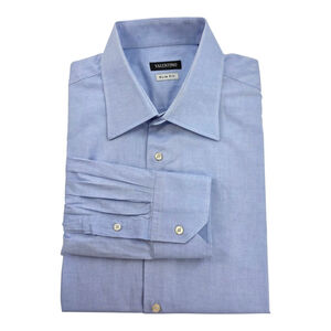 Valentino men’s light blue woven cotton dress shirt in size XL slim fit with spread collar and luxury tailoring.
