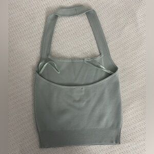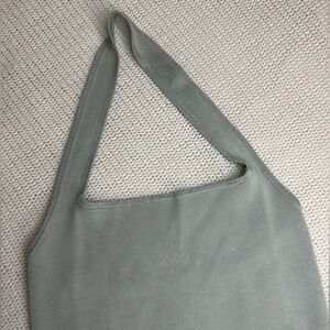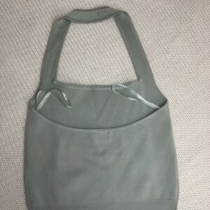 color is a really pretty light seafoam green ish (first pic shows color the best), my pics pull more grey but it’s not
