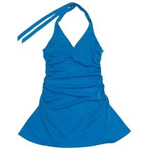 Anthropologie Womens NEW Ariana Halter Mini Dress Large Blue Stone Resort Wear