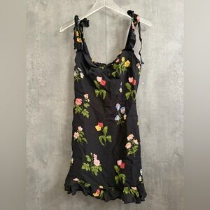 Infinitely charming and ruffled in all the right places, this barely there dress tops off the look with tie sleeves and the sweetest of necklines.