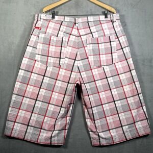 What you are buying: Southpole Shorts Mens 42 Red White Black Plaid Baggy Hip Hop Skater Y2K 14" Inseam