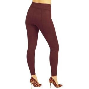 Spanx Stretch Faux Suede Leggings Dark Terracotta Burgundy Size Med New With Tag