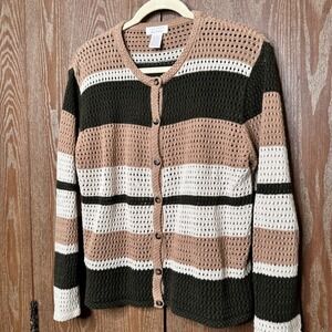 Christopher & Banks Striped Crochet Cardigan Sweater Women's Size L Button Down