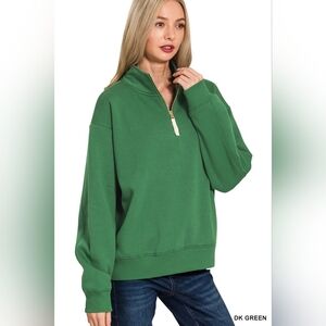 Zenana Fleece Half Zip Sweatshirt