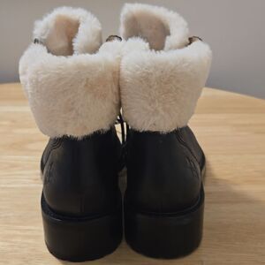 Faux Cream Colored Shearling lined the inside and outer detailing, so soft,