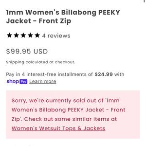Billabong 1mm Peeky front zip wetsuit Pink Floral Long Sleeve Top neoprene 6