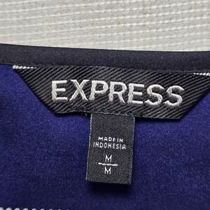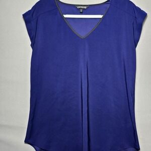Express - Women's L Blouse Royal Blue with Black Trim V Neck Short Cuff Sleeve