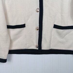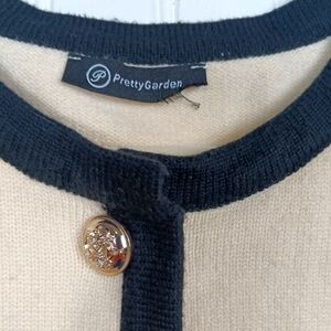 PRETTYGARDEN Knit Cream Cardigan Black Trim Gold Button Sweater L