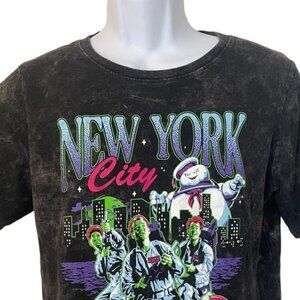 Ghostbusters New York City Graphic T Shirt Black Acid Wash Mens Large